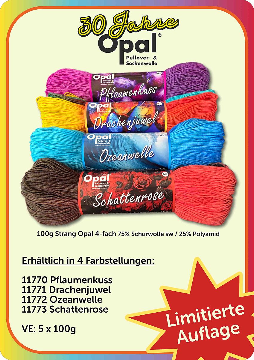 UVP 5,95 €jetzt 5,06 €Grundpreis 50,60 €/KgBewertung schreibenHier können Sie unseren Artikel für andere Kunden bewerten, vielen Dank!» PreisanfrageSie haben unseren Artikel "Opal 30 Jahre Jubiläumsedition Sockenwolle" woanders günstiger gesehen? Sagen Sie uns wo, und zu welchem Preis, und wir werden prüfen, ob wir den Preis halten können, und wir Ihnen ein auf Sie zugeschnittenes Angebot unterbreiten dürfenProduktanfrageEs sind Fragen offen geblieben? Wir freuen uns, sie zu beantworten!EAN-ListeFarbe-1770-pflaumenkuss EAN: 403261702 [...]